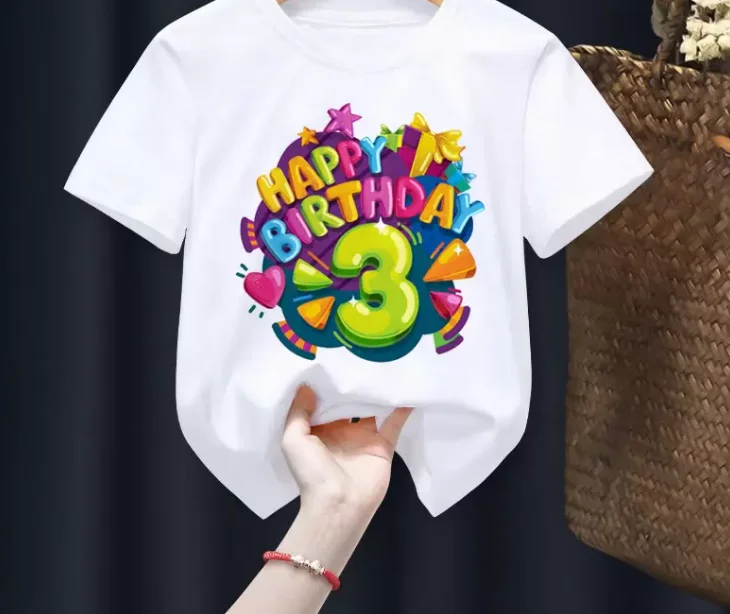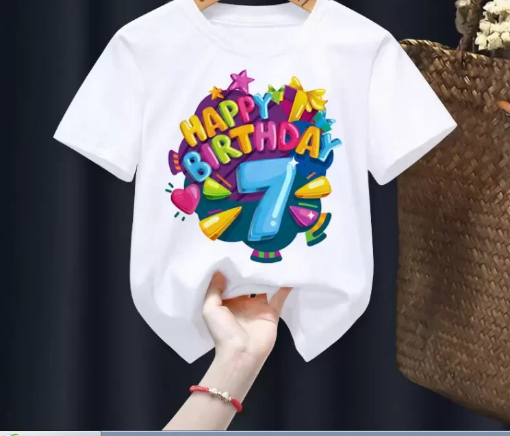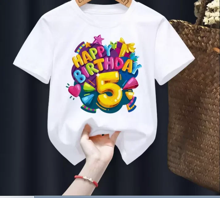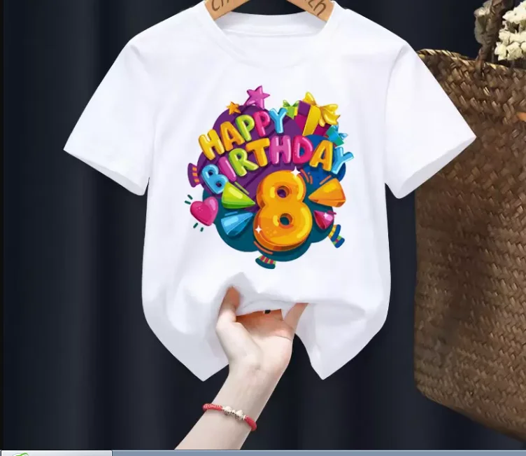 Kids Happy Birthday 2-9th Print White T-shirt Boys and Girls Clothes